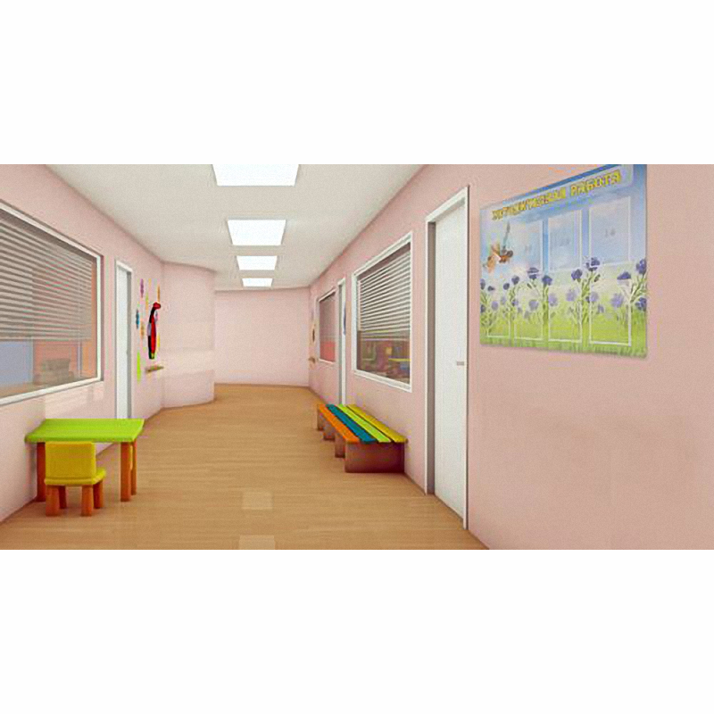 Стенд отличается ярким запоминающимся дизайном. На фоне летних трав и голубого неба выделяются синие полевые цветы. Для заголовка использованы крупные буквы ярко-жёлтого цвета. В 7 карманах формата А4 можно размещать различные объявления, плакаты, информационные листы и советы для воспитателей, педагогов и родителей малышей.