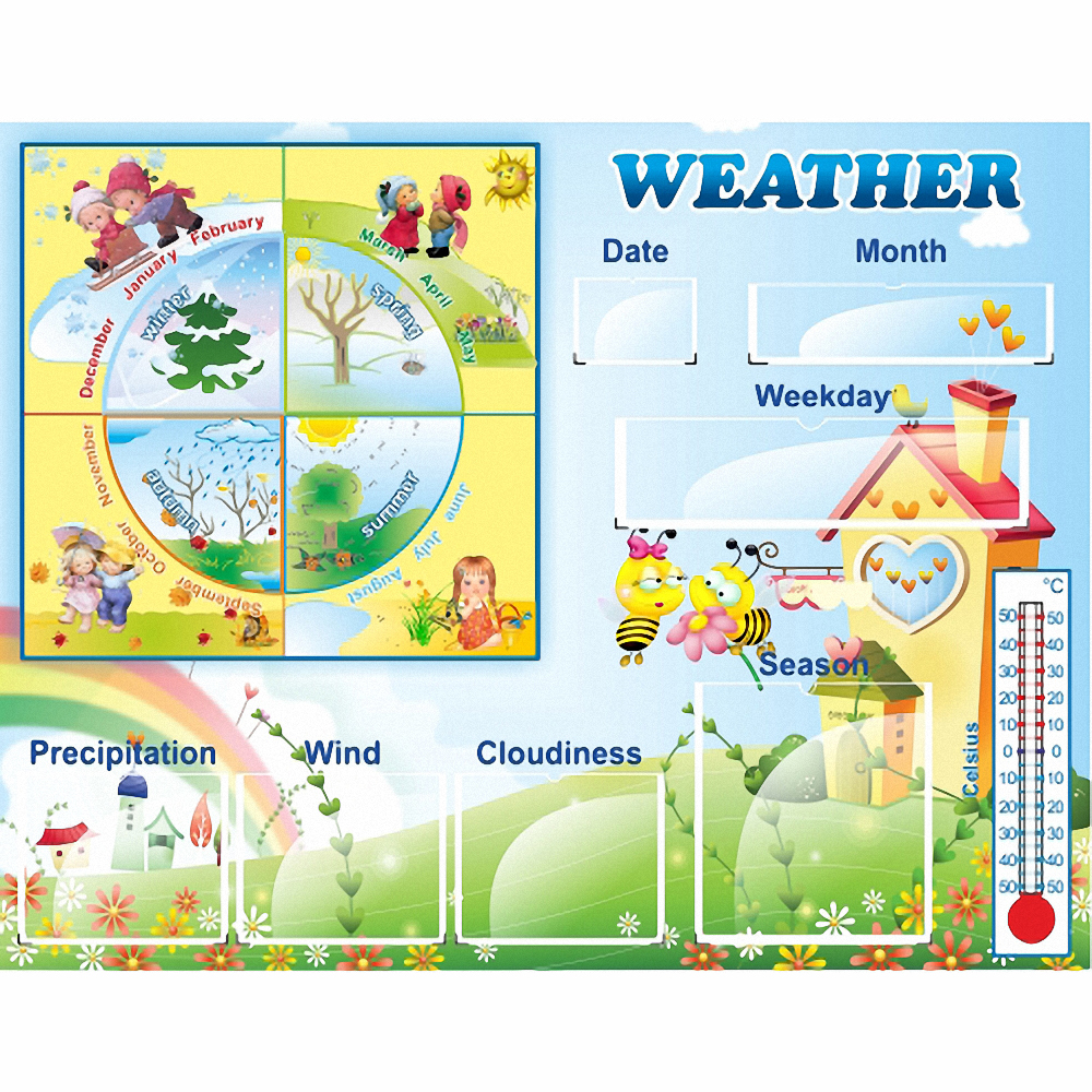 Главная Каталог Оборудование для детского сада Информационные стенды Стенд "Погода со вставками" на английском языке