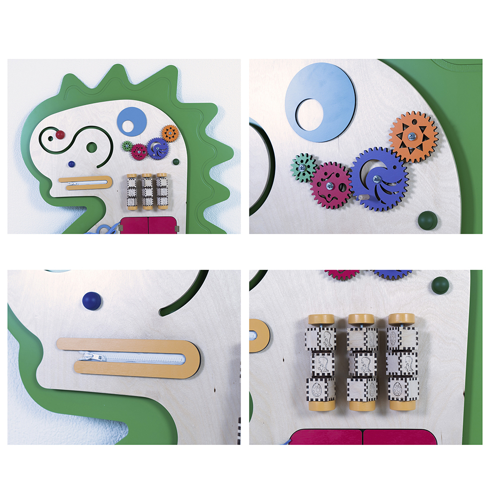 Главная задача бизибордов: помочь детям безопасно освоить предметы быта (защелки, крепления, механизмы, переключатели, розетки). На упрощенных тренажерах с привлекательными рисунками дети развивают мелкую моторику, оттачивают мастерство, чтобы в дальнейшем применить полученный навык на практике.