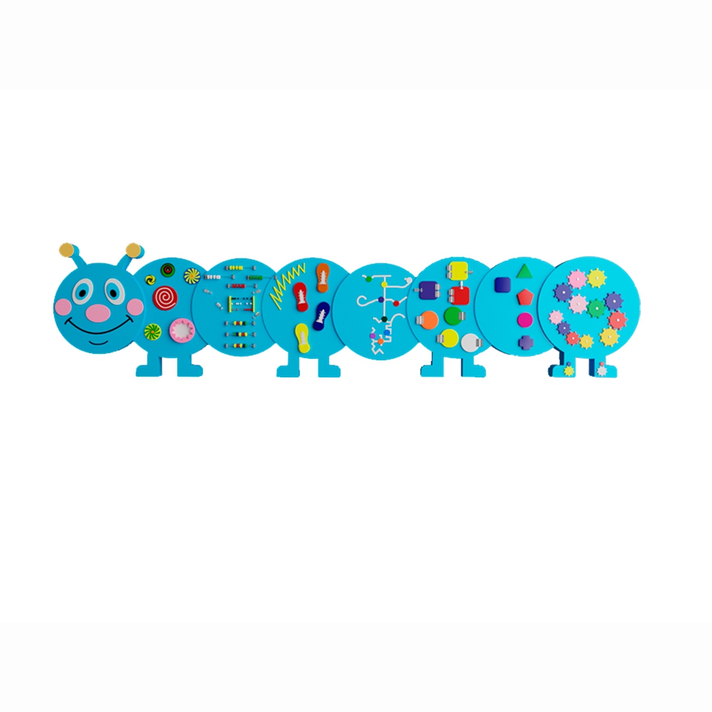 Бизиборд в виде синей гусенички №2 украсит любую детскую комнату, развивает моторику, концентрацию внимания, мышление, память ребенка и не только. Благодаря приятному голубому цвету и задорной улыбке гусеницы, которая привлекает внимание ребенка почти сразу, малыш готов погрузиться в увлекательную игру с новым другом. Красочные, необычные детали развивающей игры, выполнены из безопасных материалов, что позволяет пользоваться бизибордом с самого раннего возраста, привлекая внимание ребенка с пользой.