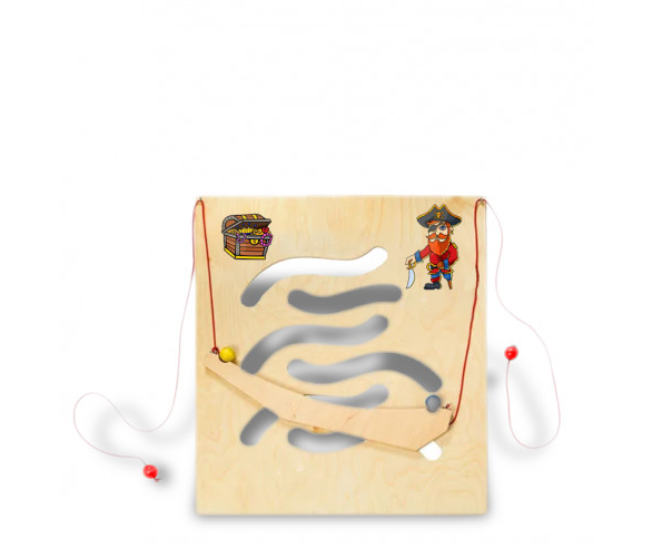 Игровая панель с пиратом и сокровищами - это красивая игровая зона, выполненная из качественных материалов, которая не оставляет зацепок в детских ручках. Это большое поле с изображением пирата и сундука с сокровищами. На панели есть вырезанные линии, напоминающие волны. В комплекте есть еще лодка и два шарика на веревке. В ней не обходимо ловкими и точными движениями за ниточки управлять лодкой, и довести ее до финиша, не уронив шарик. Игровая панель с пиратом и сокровищами заинтересуют как маленьких детей, так и постарше, а родителям поможет сохранить дом в целости и сохранности. Она подойдет для домашнего использования и для специальных учреждений.