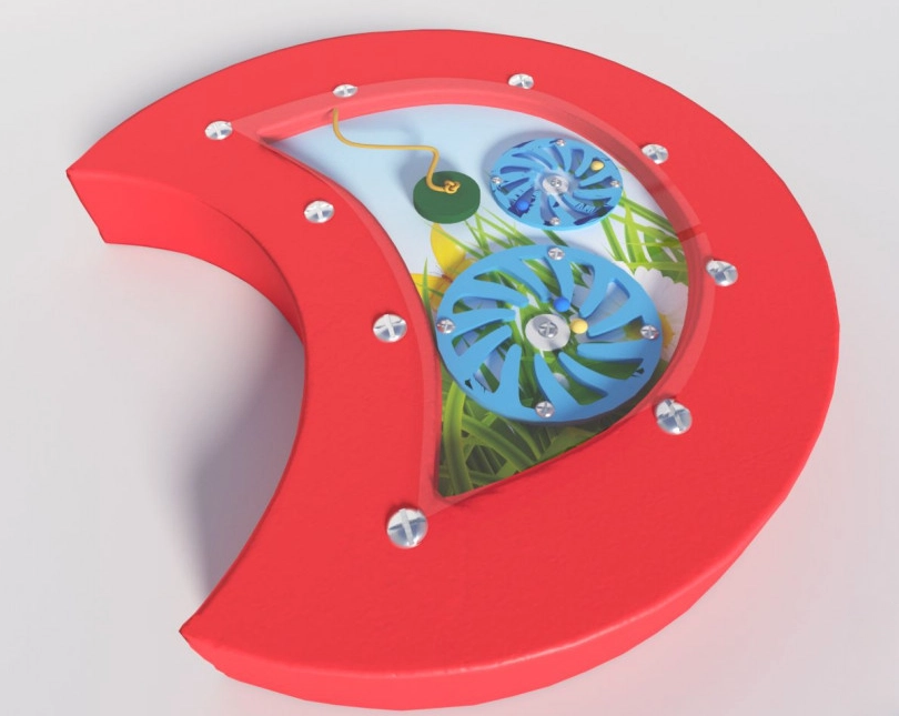 • Настенный игровой элемент представлять собой конструкцию состоящего из шестеренок с магнитным элементом и шариками. С помощью магнитного палочки шарики распределяются по шестеренкам для установления баланса.