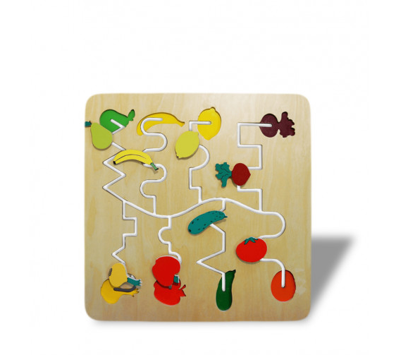 Развивающая панель-лабиринт с фруктами - это красивая игровая зона, выполненная из качественных материалов, которая не оставляет зацепок в детских ручках. Эта игра представляет большое поле с фруктами и овощами. Каждый из них передвигается по лабиринту. У каждого предмета есть свой домик, в который необходимо довести соответствующий фрукт и овощ. Узнать домик можно по очертанию форм. Развивающая панель-лабиринт “Корзина фруктов” заинтересует как маленьких детей, так и постарше, а родителям поможет сохранить дом в целости и сохранности. Она подойдет для домашнего использования и для специальных учреждений.