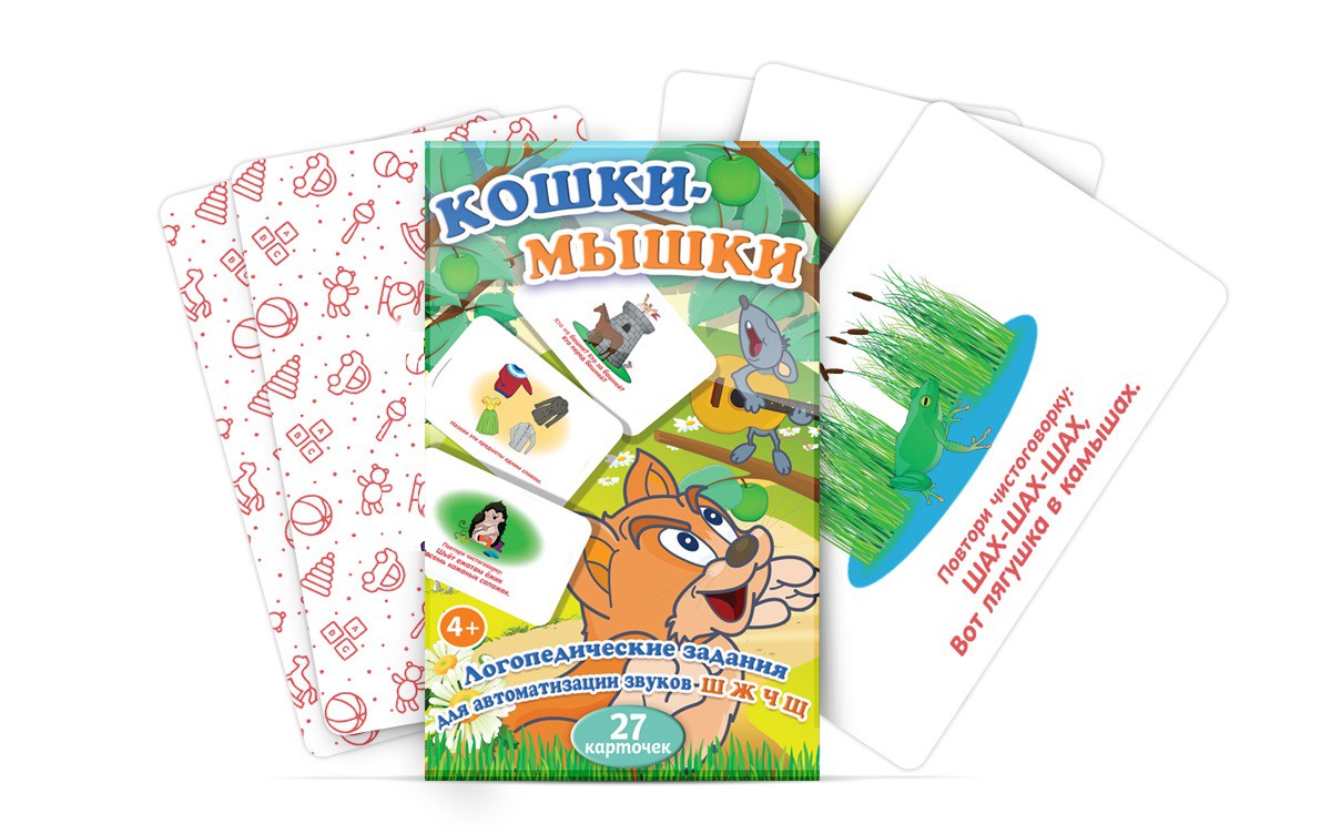 Логопедические упражнения в наборе «Кошки-мышки» помогут закрепить звуки [Ш], [Ж], [Ч] и [Щ] в активной речи.