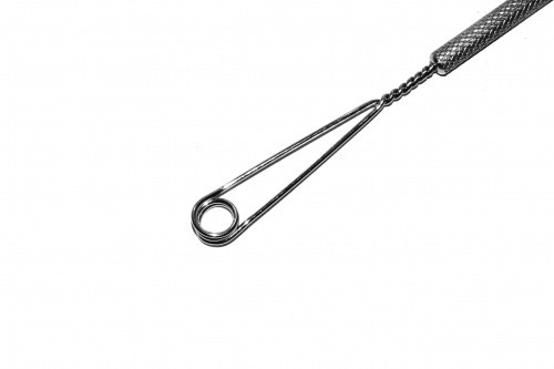 • Массажный зонд, который может быть использован для логопедического массажа верхней продольной мышцы, нижней поверхности языка.