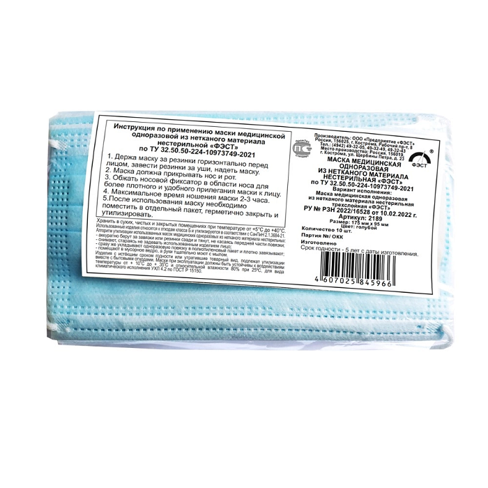Маска медицинская нестерильная одноразовая (10 штук) - fgospostavki.ru - Зеленогорск