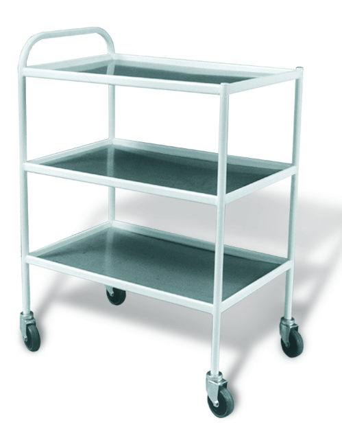 Главная Каталог Оборудование для медицинского кабинета Столик инструментальный передвижной металлический с тремя стеклянными полками (мебельные колеса)