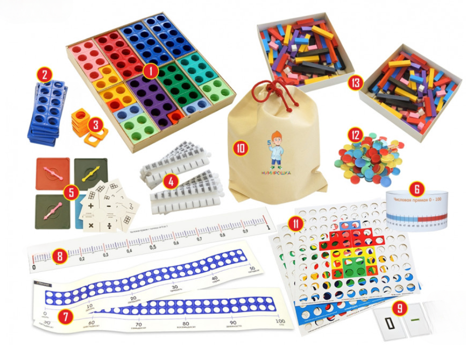 Набор дополнительных рабочих материалов для детей 9-11 лет Нумирошка – хороший выбор для детского сада или оздоровительного центра, где занятия проводятся в группе детей. Данная система поможет детям обучиться базовым математическим навыкам, а также развить усидчивость, мышление, тактильность.