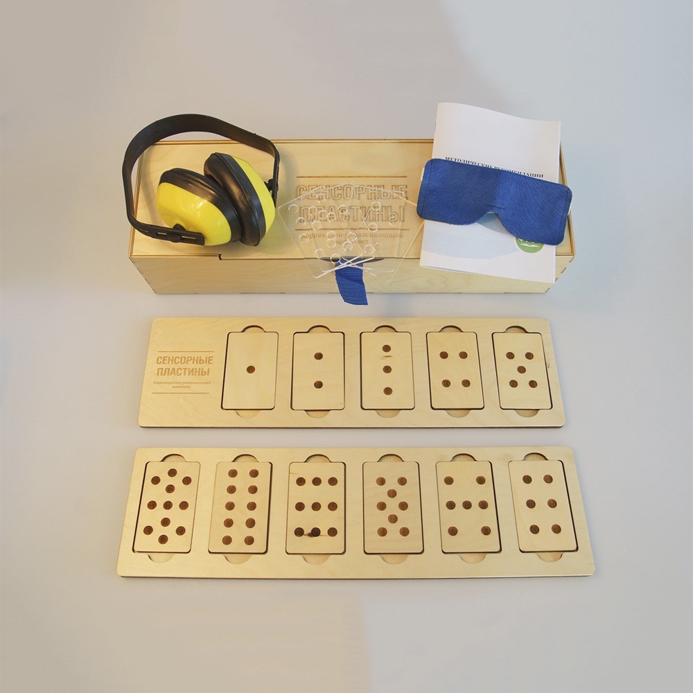 Профессиональный комплект для работы с детьми «Сенсорные пластины» направлен на развитие тактильного восприятия и различения с усложнением в виде когнитивной нагрузки (счет, выстраивание числовых последовательностей). Рекомендован для индивидуальной работы с детьми от 5 лет. Комплект предполагает проведение упражнений, как при полном сенсорном контроле, так и при условно-изолированном тактильном канале. В этом случае, когнитивная нагрузка создает условия для так называемых осмысленных тактильных упражнений.