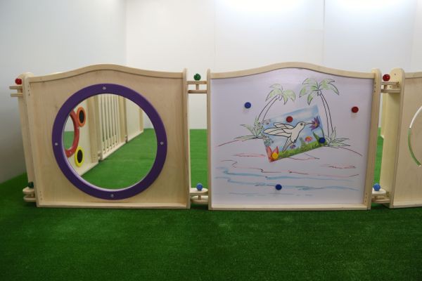 Панель для игровых зон "Иллюминатор" выполнена из высококачественной березовой фанеры. В фасаде панели расположен круг из органического небьющегося стекла.