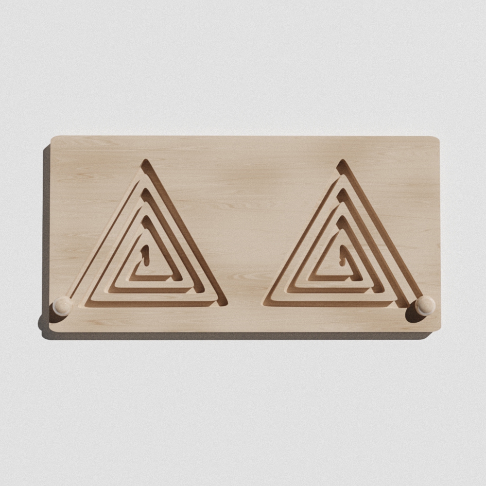 Малышу необходимо взять два бегунка и установить в лабиринте. Сначала двигать кружок по маршруту правой, затем только левой рукой, а после двигаться по траектории лабиринта обоими руками одновременно по часовой стрелке, а потом против. Упражнение помогает сформировать одновременную работу рук, глаз и обоих полушарий.