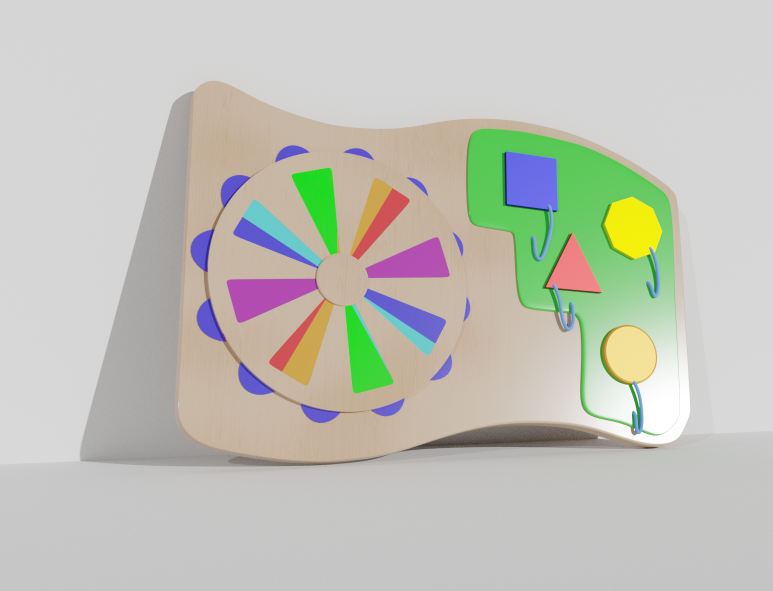 Тактильно-развивающая панель в ярких красках - это разноцветное игровое поле, выполненное из качественных материалов, которая не оставляет зацепок в детских ручках. Этот модуль состоит подвижного круга, который малыш легко может крутить, касаясь за край. А также на доске есть геометрические фигуры, которые прикреплены ниточкой к своему окошку. Их легко можно доставать и вставлять в нужный пазл. Панель направлена на развитие ребенка. Ребенок может потрогать поверхности и это, делает игру интересной, приятной и успокаивающей. Тактильно-развивающая панель заинтересует как маленьких детей, так и постарше, а родителям поможет сохранить дом в целости и сохранности. Она подойдет для домашнего использования и для специальных учреждений.