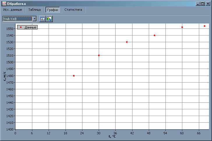 Выполнение работы включает задание на экране компьютера температуры воды в резервуаре, а после ее достижения — фиксацию длин резонатора, при которых амплитуда акустических колебаний принимает максимальные значения. На основании полученных данных строится график зависимости координаты подвижного отражателя от номера максимума, он аппроксимируется прямой линией, по тангенсу угла наклона которой определяется длина волны. Скорость звука, рассчитанная на основании длины волны и частоты сигнала, вместе с температурой воды вводится в таблицу для построения графика зависимости скорости звука от температуры.