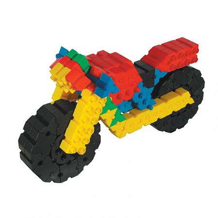 Конструктор «Мотоциклы» состоит из ярких деталей треугольной и квадратной формы, колеса, соединительные и направляющие элементы для сборки 3D моделей 4 мотоциклов и множества других интересных объектов. Уникальный способ крепления позволяет соединять детали по 6 (шести) направлениям, предоставляя неограниченные возможности для развития фантазии ребенка.