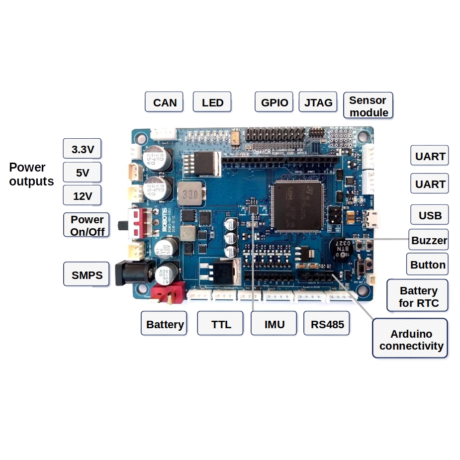 При использовании совместно со встраиваемым одноплатным компьютером (например, SBC), модуль управления может работать с большей мощностью. А использование операционной системы ROS позволит максимизировать функциональность OpenCR1.0 за счет использования множества открытых программных ROS-библиотек.