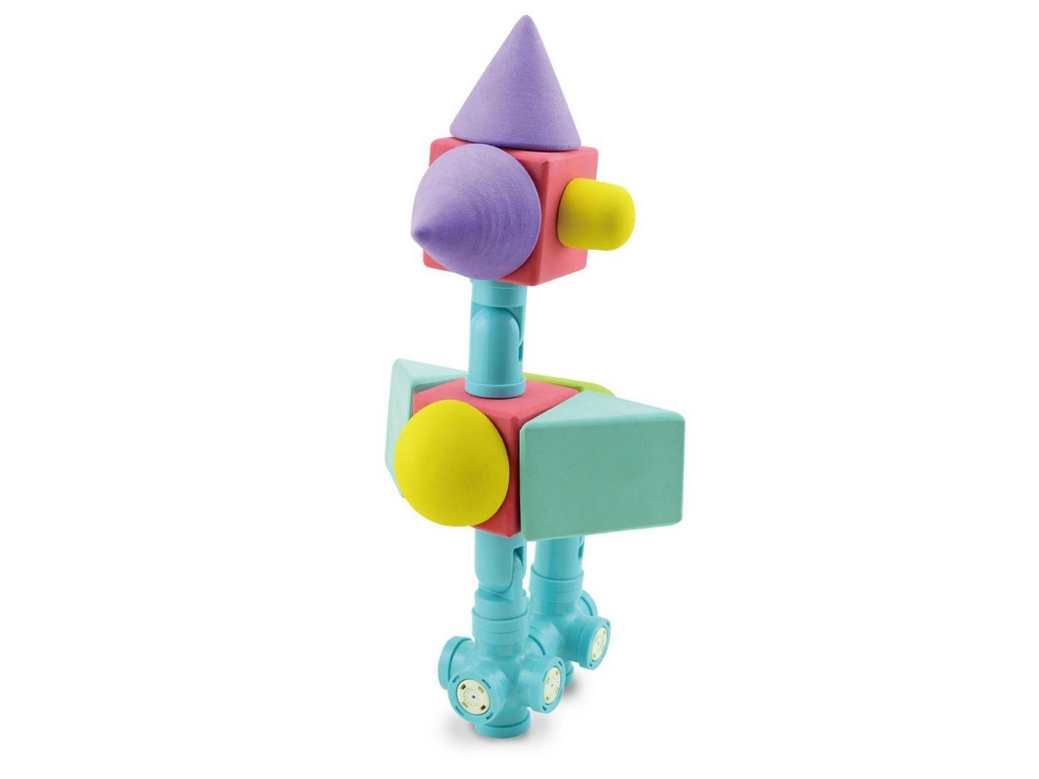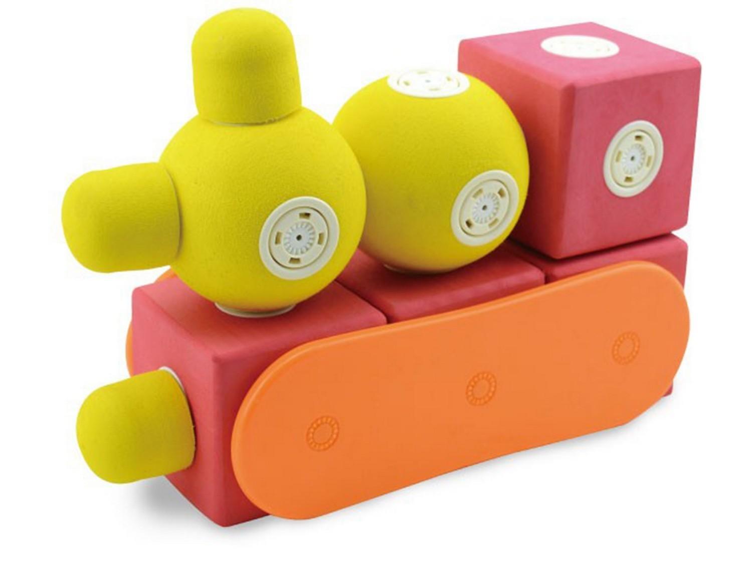 Конструктор «МАККИ 37» — набор цветных магнитных деталей (крупных геометрических фигур с магнитными креплениями). Детали конструктора окрашены в приятные однотонные цвета, со звуковым эффектом погремушки.