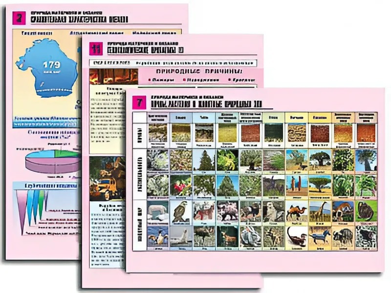 Комплект таблиц по географии "Природа материков и океанов" раздаточные (цветные, ламинированные, А4, 12 штук) - fgospostavki.ru - Зеленогорск