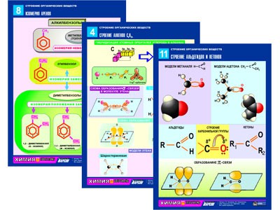 Комплект таблиц по химии раздаточных "Строение органических веществ" (цветные, ламинированные, А4, 16 штук)