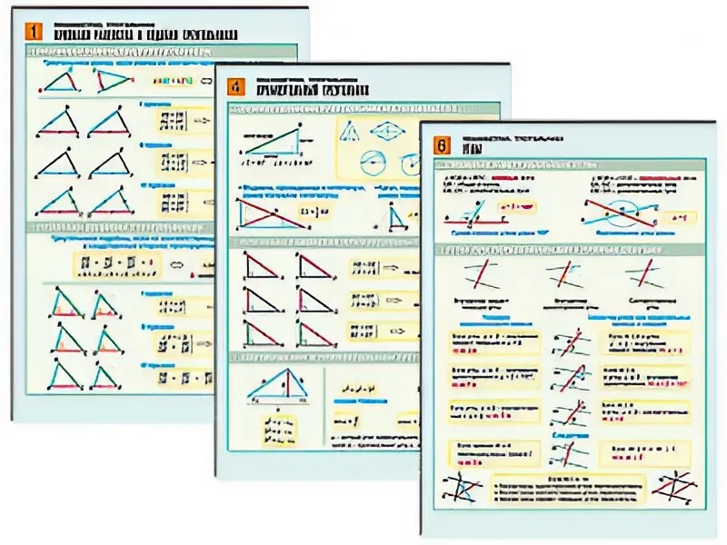Комплект таблиц по геометрии "Планиметрия. Треугольники" раздаточные (цветные, ламинированные, А4, 6 штук) - fgospostavki.ru - Зеленогорск
