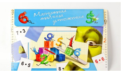 На магнитном игровом поле расположены ответы на примеры из таблицы умножения (кроме самых очевидных). Отдельно напечатаны карточки с этими примерами. Ваша задача - найти для каждого из них правильный ответ и примагнитить на него карточку цифрами вниз, к игровому полю.