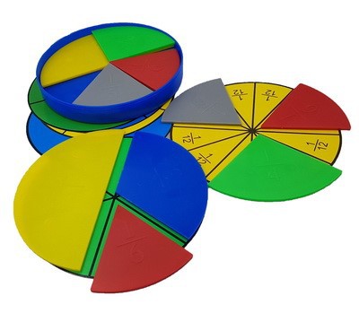 Пособие представляет собой комплект из 5 (пластмассовых) окружностей разного цвета, разделенных на отдельные сектора, на секторах есть цифровое обозначение, с обратной стороны есть магнит для крепления на металлической доске. Каждый сектор характеризует какую-либо часть окружности. Например, одна окружность состоит из 2 одинаковых секторов, т.е. один сектор составляет ½ часть всей окружности. Другие окружности состоят из 3, 4, 5 и 6 одинаковых секторов. Кроме того, в комплект входят окружности разного цвета (отпечатанные на бумаге) с определенными секторами и их цифровым обозначением.