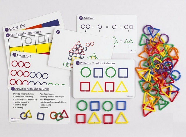 С помощъю звеньев можно составлять цветовые и геометрические ряды и цепочки, в том числе и по