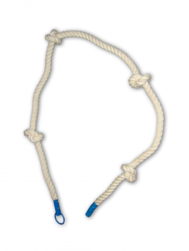 Канат для лазания предназначен для общефизической подготовки учащихся в спортивных залах. Опираясь на узлы, лазить по такому канату легче, чем по обычному гладкому.