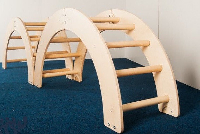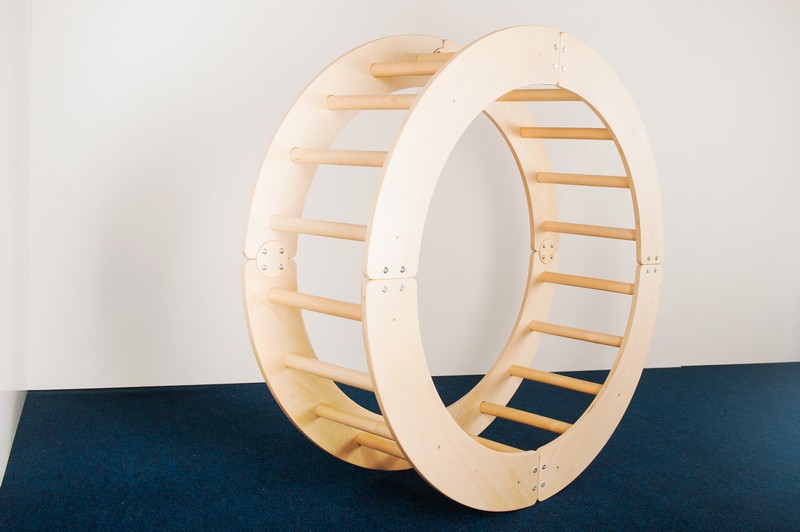 Колесо собирается из четырех частей, которые можно складывать по-разному и использовать отдельно. Можно сделать качели, мостик для лазания, барьеры для различных подвижных игр. Но, безусловно, больше всего детям понравится кататься в нем! Катание в колесе абсолютно безопасно - оно сконструировано так, что, держась за его перекладины, ребенок не прищемит пальцы. Отлично развивает физическую силу, выносливость и координацию.
