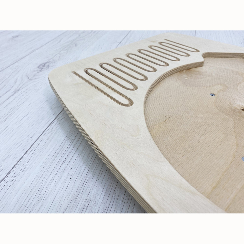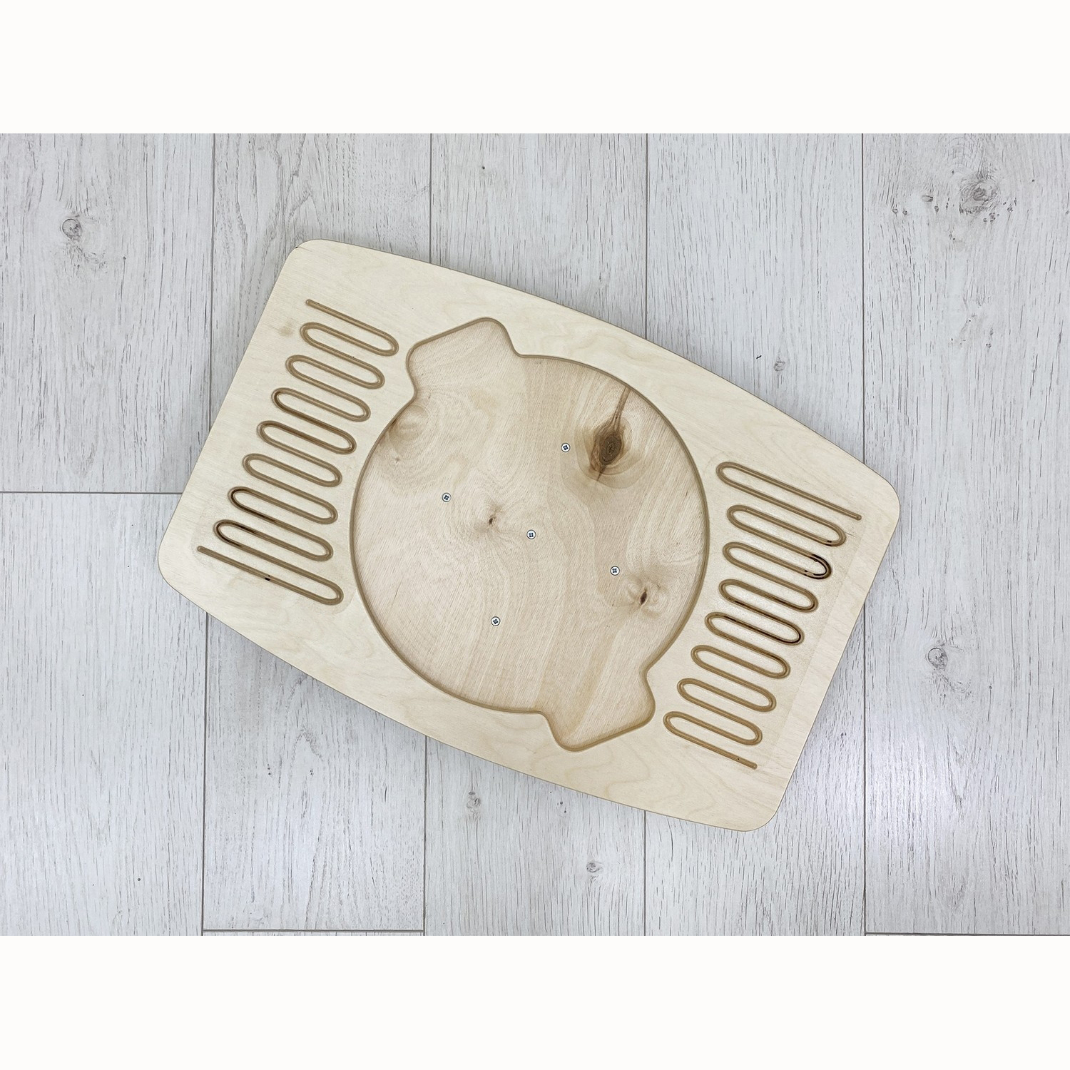 Это игровой тренажёр, улучшающий работу мозга через тренировку всего тела. Состоит из прямоугольной доски, закреплённой на неустойчивом основании в виде полусферы. В зоне ног ребристая змейка и противоскользящее покрытие. В центре балансира углубление под вставку-лабиринт. Её можно заказать отдельно.