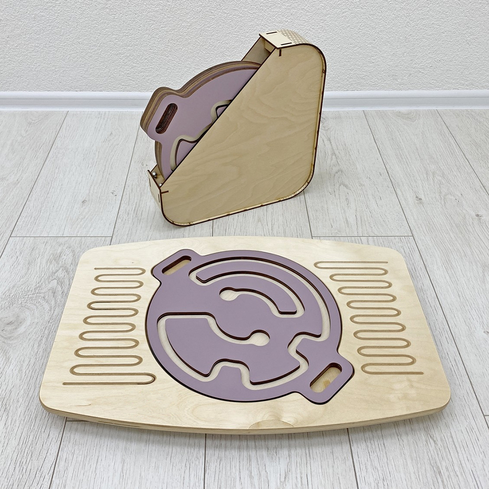 Благодаря заменяемости лабиринтов, игрушка просто универсальна! Дети могут играть отдельно с ручными лабиринтами или вставить их в балансир для ног и соревноваться в ловкости и скорости прохождения.