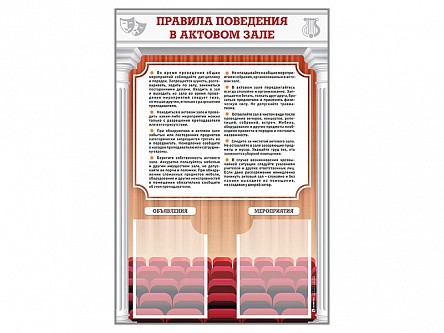 Стенд-уголок предназначен для отображения информации о правилах поведения в актовом зале.