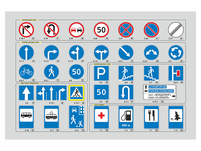 Базовый комплект светового оборудования представляет собой набор из трех информационных панелей, на двух из которых размещены световые элементы в виде дорожных знаков согласно ГОСТу Р 52290-2004, а на третьей панели – световые элементы в виде дорожных светофоров согласно ГОСТу Р 52282-2004. Всего на панелях размещено 97 световых элементов.