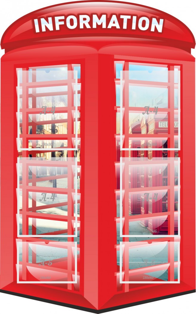 Школьный резной твёрдый стенд "ИНФОРМАЦИЯ",  выполненный в виде традиционной английской телефонной будки, станет центральным украшениям холла или учительской любой школы, учебного центра, университета или училища.