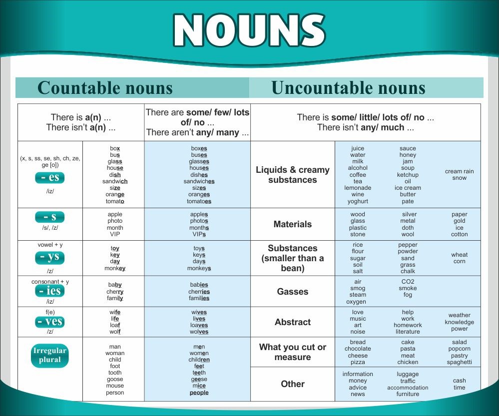Стенд помогает освоить очень нужную информацию об исчисляемых и неисчисляемых именах существительных, потому что такая тема очень легко может стать камнем преткновения на пути изучения английского языка как иностранного. Ведь, по сравнению с русским, в английском есть свои особые нюансы по определению имён существительных к разряду исчисляемых или неисчисляемых.