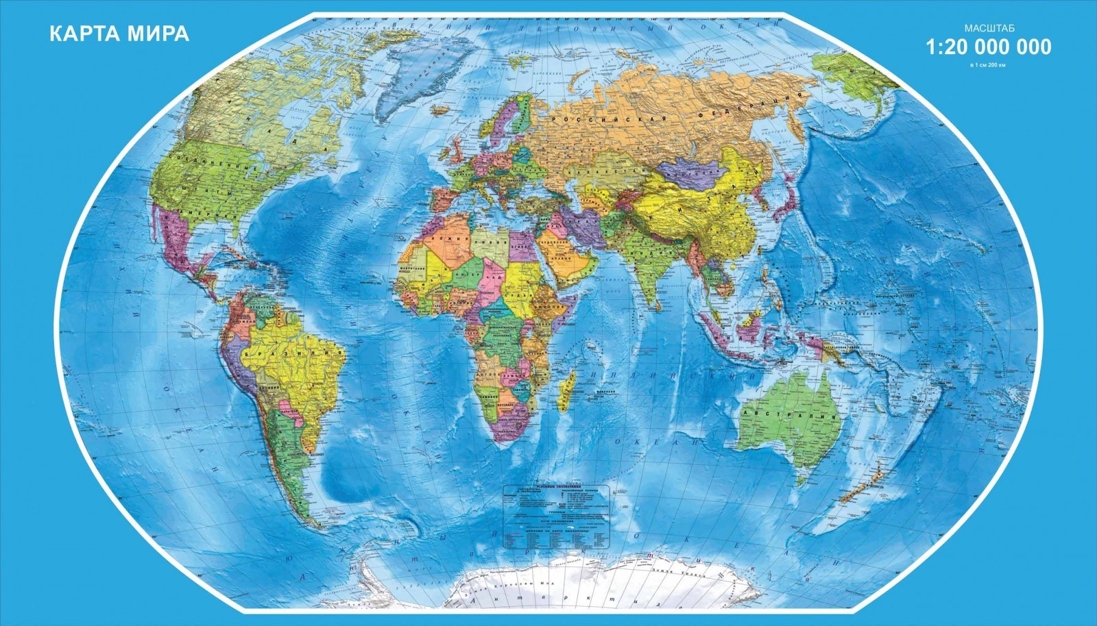 Яркая и красочная карта просто находка для учителя. Она идеально впишется в интерьер любого класса. Проста и лаконична. На карте четко прорисованы все мелкие детали, подписаны все материки, страны, моря, океаны и проливы. Классическая карта, которая не устареет через несколько лет. Она яркая, это означает, что даже на последних партах ученики смогут ее разглядеть. Но главное ее преимущество заключается в том, что она качественная. Эта карта изготовлена из ПВХ-пластика, пленки с фотопечатью и ламинирующей пленки, а это значит, что карта прослужит долгие годы, сохраняя первоначальный вид. Краска не поблекнет и не выцветет.