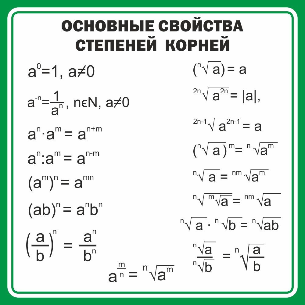 Стенд "Основные свойства степеней корней" - fgospostavki.ru - Зеленогорск