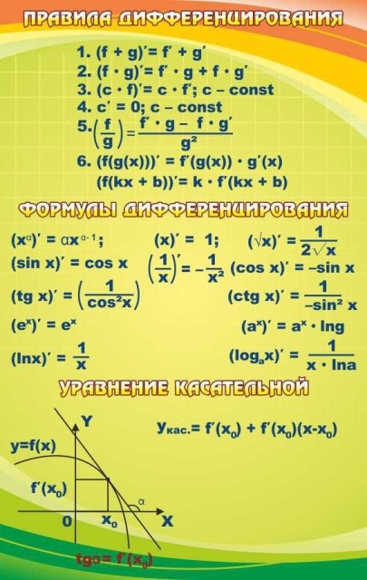 Стенд "Правила дифференцирования"