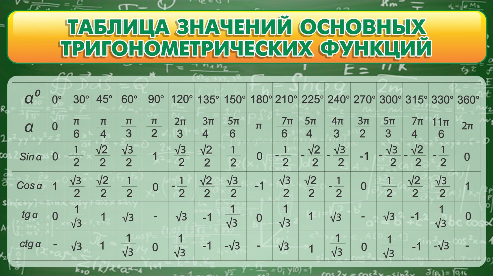 Стенд "Таблица значений основных тригонометрических функций" Вариант 2 - fgospostavki.ru - Зеленогорск