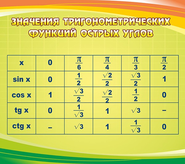 Стенд "Значения тригонометрических функций острых углов" - fgospostavki.ru - Зеленогорск
