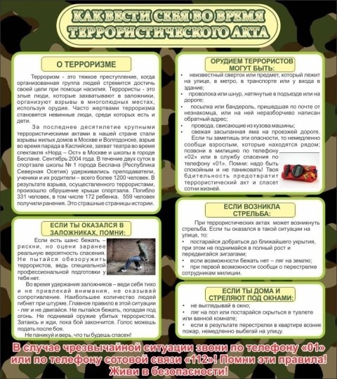 Стенд "Как вести себя во время террористического акта" - fgospostavki.ru - Зеленогорск
