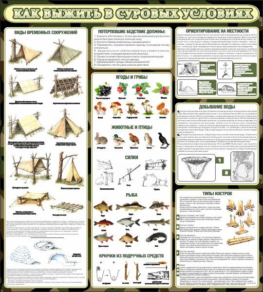 Главная Каталог Стенды Кабинеты ОБЖ и НВП Стенд информационный "Как выжить в суровых условиях"