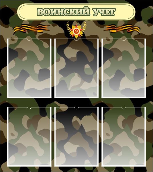 Когда заканчивается выпускной, каждый школьник становится защитником отечества, вступая в ряды российской армии, и если руководство вовремя не позаботилось об информации о воинском учете, то выпускнику достаточно тяжело разбираться во всех нюансах. Стенд «Воинский учет» позволяет самостоятельно раскрыть всю информацию в учебных заведениях, имея шесть карманов А4 формата, которые позволяют изменять или дополнять регламенты воинского учета, постоянно доводя свежую информацию. Стенд, помимо двухстороннего скотча, можно крепить на жидкие гвозди и любые другие монтажные элементы.