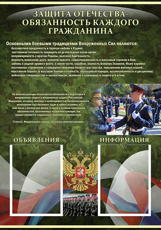 Стенд "Защита Отечества-обязанность каждого гражданина" - fgospostavki.ru - Зеленогорск