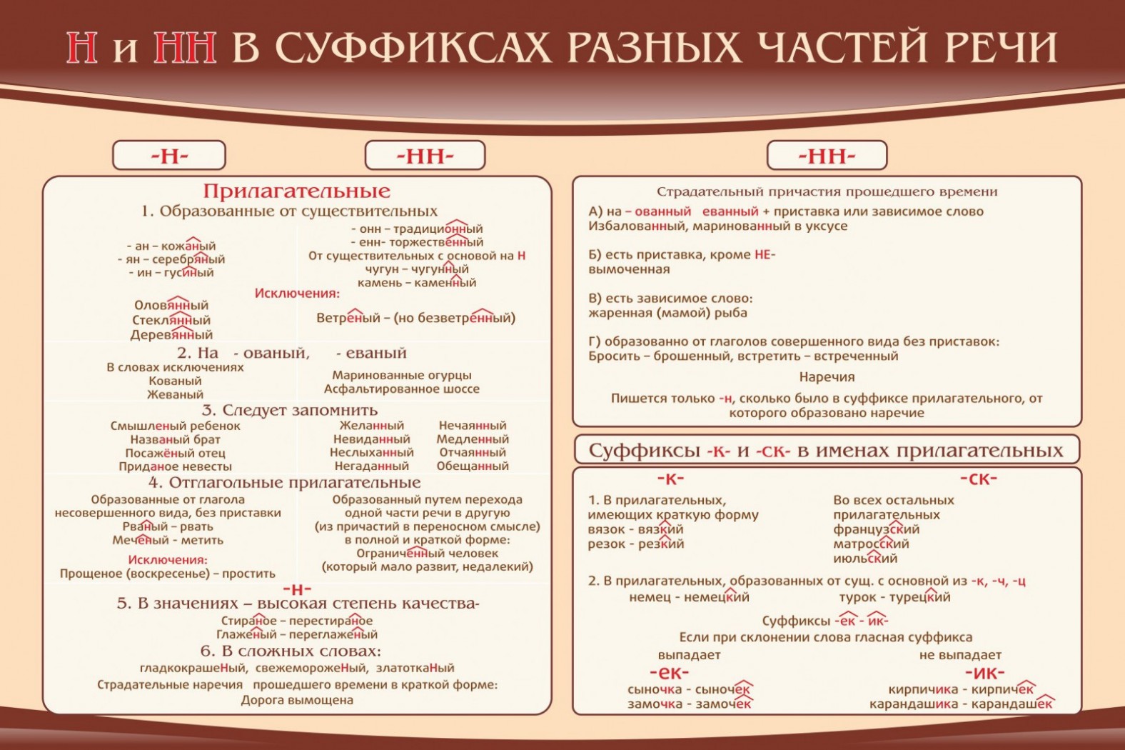 Стенд ""н" и "нн" в суффиксах разных частей речи"