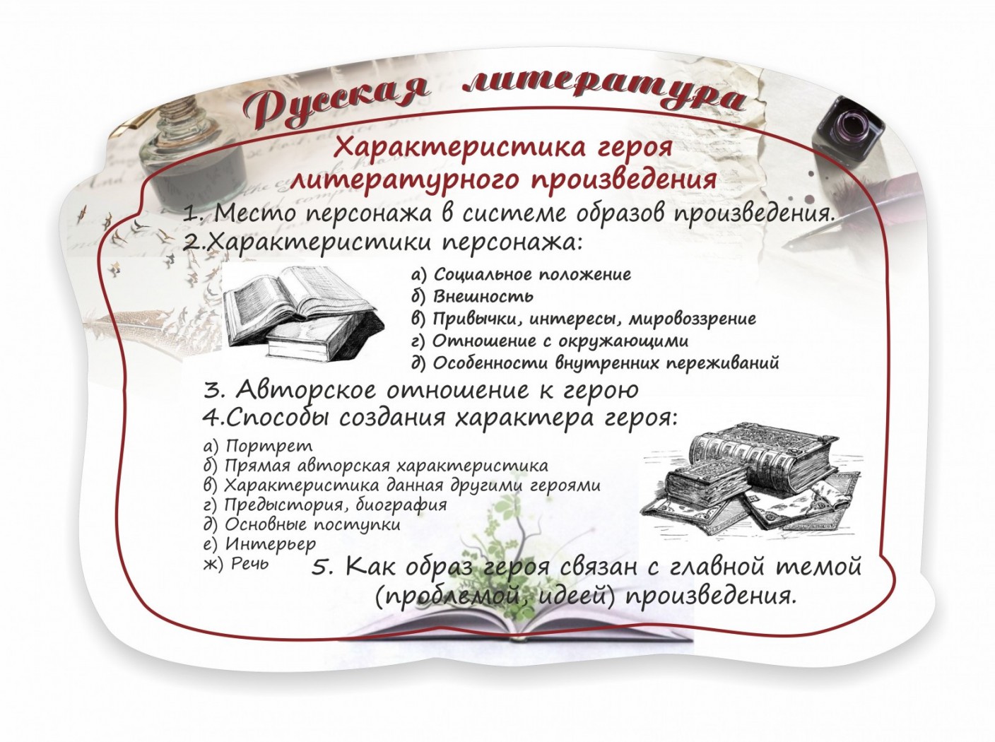 Стенд резной "Характеристика героя литературного произведения"