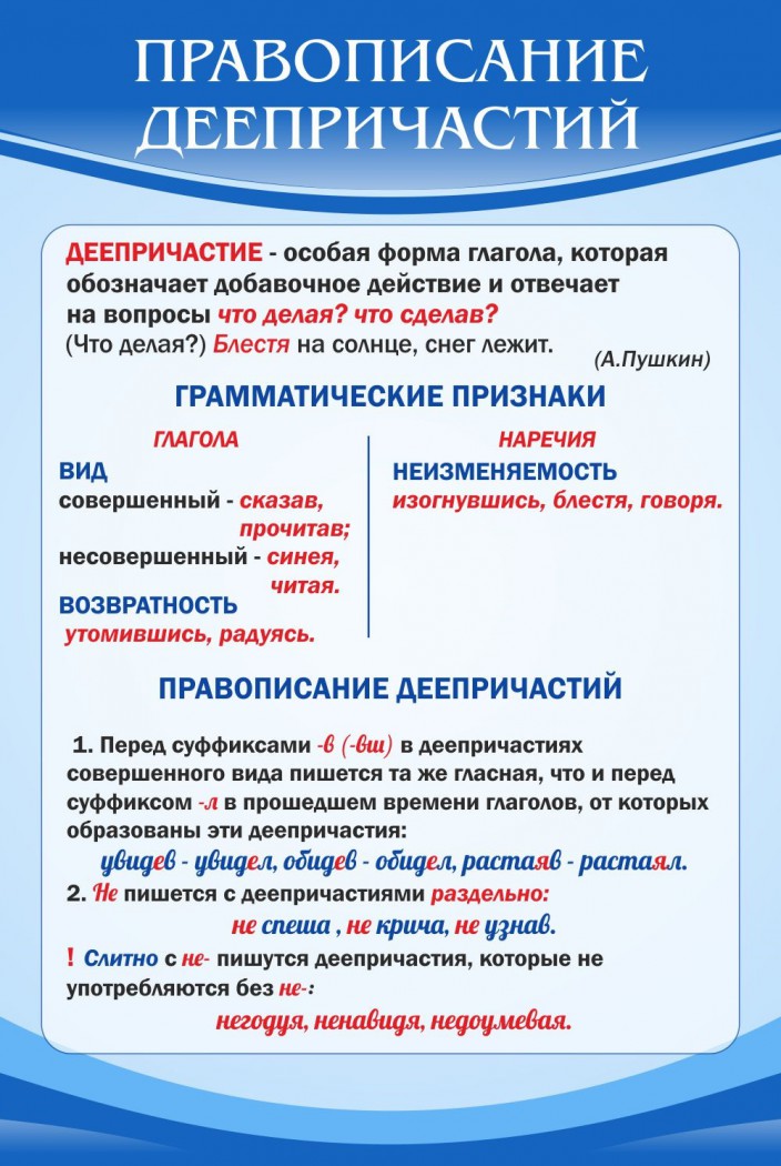 Стенд "Правописание деепричастий" - fgospostavki.ru - Зеленогорск