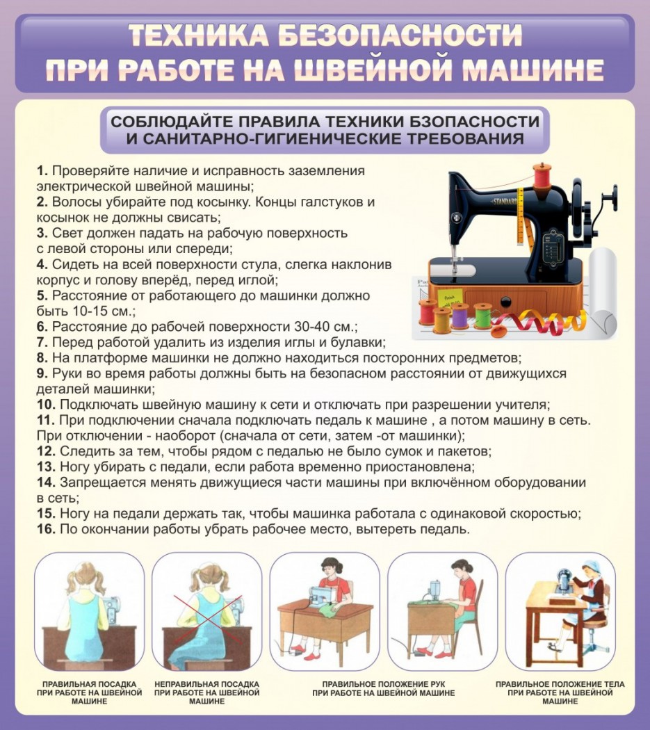 Стенд "Техника безопасности при работе на швейной машине"