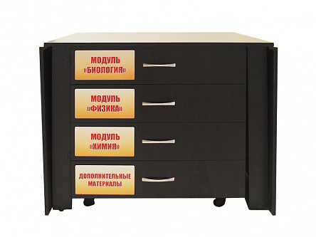 Лабораторный комплекс представляет собой составной модульный учебно-лабораторный стол с интегрированным в него учебным и вспомогательным оборудованием. Каждый модуль оснащен учебным оборудованием по одному из предметов средней и старшей школы: физика, химия, биология, таким как:
