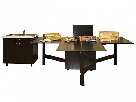 Конструкция стола позволяет работать как с отдельными модулями, так и со всеми тремя модулями одновременно, используя единую рабочую поверхность со вспомогательным оборудованием, что очень удобно при изучении смежных тем. В комплект вспомогательного оборудования входит: