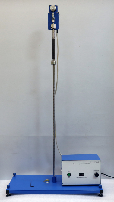 На основании установлена стойка с сантиметровой шкалой. В верхней части стойки на кронштейне закреплен электродвигатель. Регулировка оборотов двигателя осуществляется с блока управления.